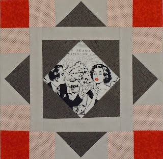 It is newsprint with lots of ads and occasional photos in black and white with red accents. Decidedly retro. I am hoping for a 50’s comic book? look. We will see where this goes after the next few blocks. Hop on over to http://www.electricquilt.com/ and check it out! Just type BOM in the search box on the home page and you are there.