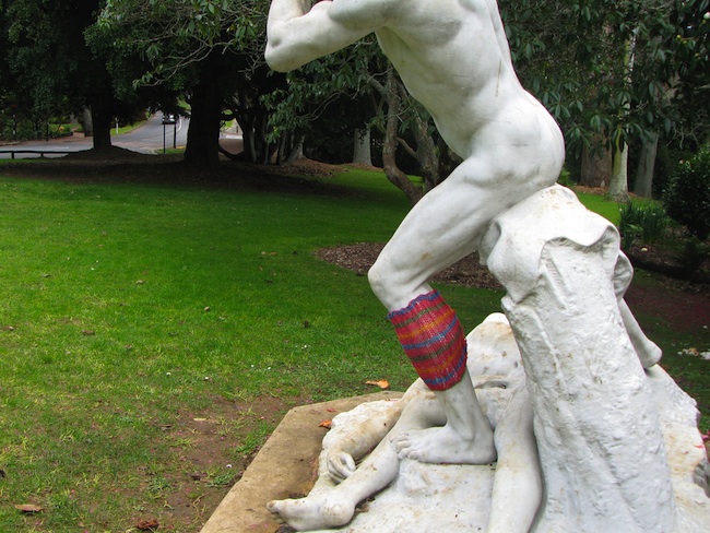 I have to admit that I had never heard of this form of guerilla knitting, but I did some searching on the internet and found that this urban art form is becoming very popular worldwide. You can see some amazing photos online at http://www.yarnbombing.com/. Here are some I love: