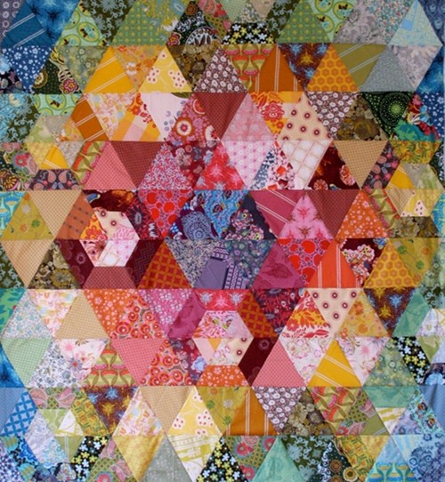 Isn’t this beautiful? I love the hexagons that are created as a secondary design and the colors sing. You can download the pattern for this quilt here.